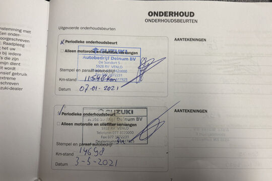 Garantie tot 3-1-2030, mits jaarlijks onderhoud volgens fabrieksvoorschrift bij een Suzuki-dealer, kijk voor de voorwaarden op suzuki.nl