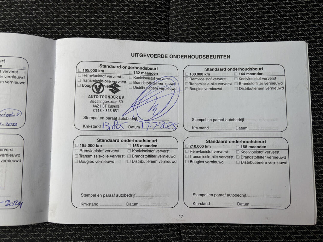 Standaard wordt deze auto afgeleverd met geldige APK, vloeistofcontrole, mattenset, autodocumentatie, RDW-leges en 2 sleutels. Voor € 595,- extra wordt deze auto afgeleverd met een nieuwe APK, complete afleverbeurt aan de hand van historie en onderhoudsschema, indien nodig en van toepassing distributieriem vervangen volgens fabrieksvoorschrift, halve tank brandstof, complete poetsbeurt, 6 maanden Auto Toonder garantie (tenzij anders vermeld) en een mobiliteitspas (12 maanden pech-onderweg service). Voor €395,- extra krijgt u 12 maanden BOVAG garantie op de auto.